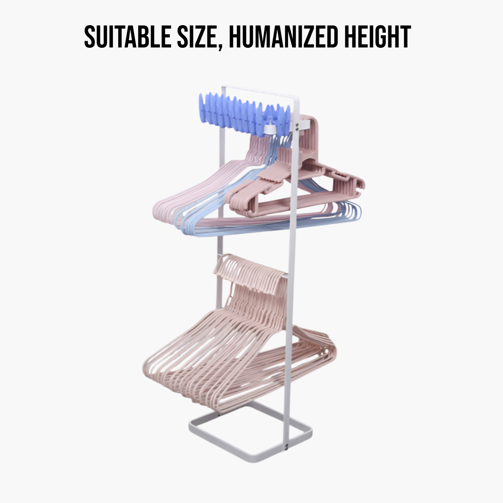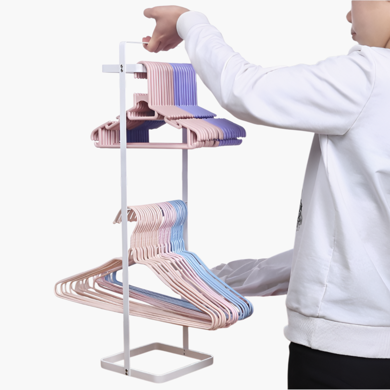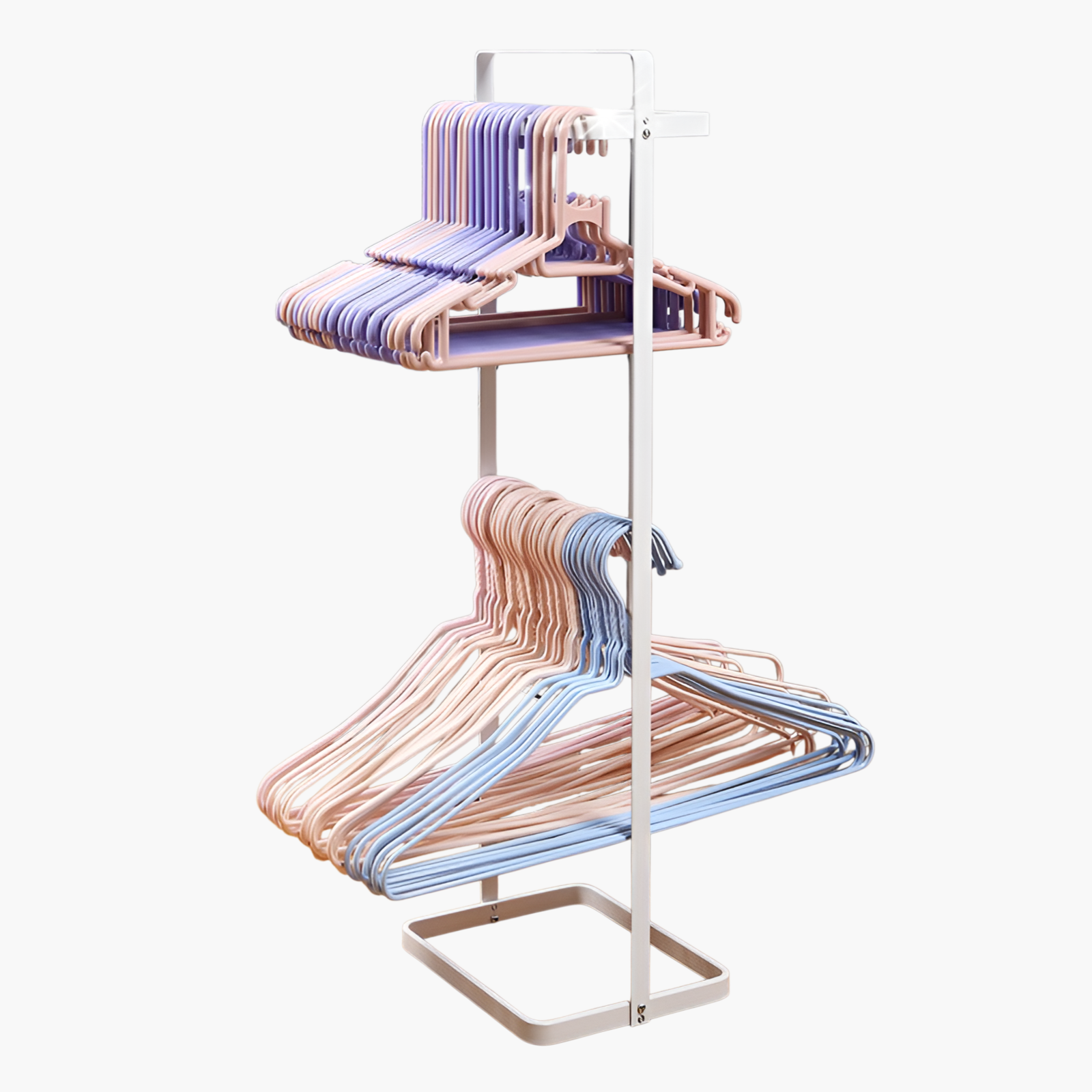 Space-saving clothes hanger storage rack, durable metal construction, easy wall-mount installation, keeps hangers organized and accessible, suitable for home and laundry room use.