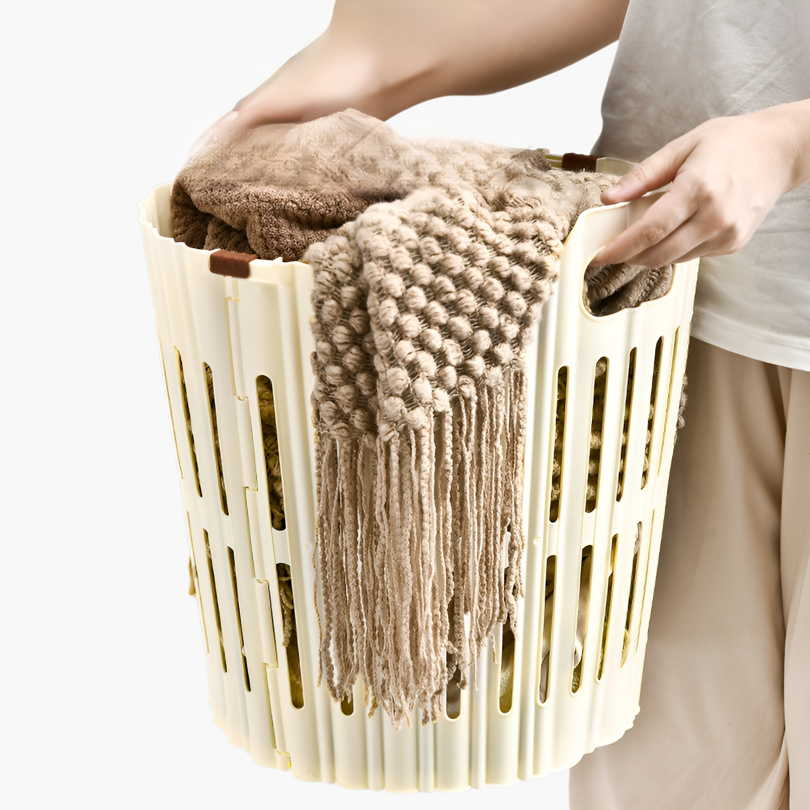 Space-saving household folding laundry basket, lightweight design, easy to carry, durable material, large capacity, convenient for storage and daily use.