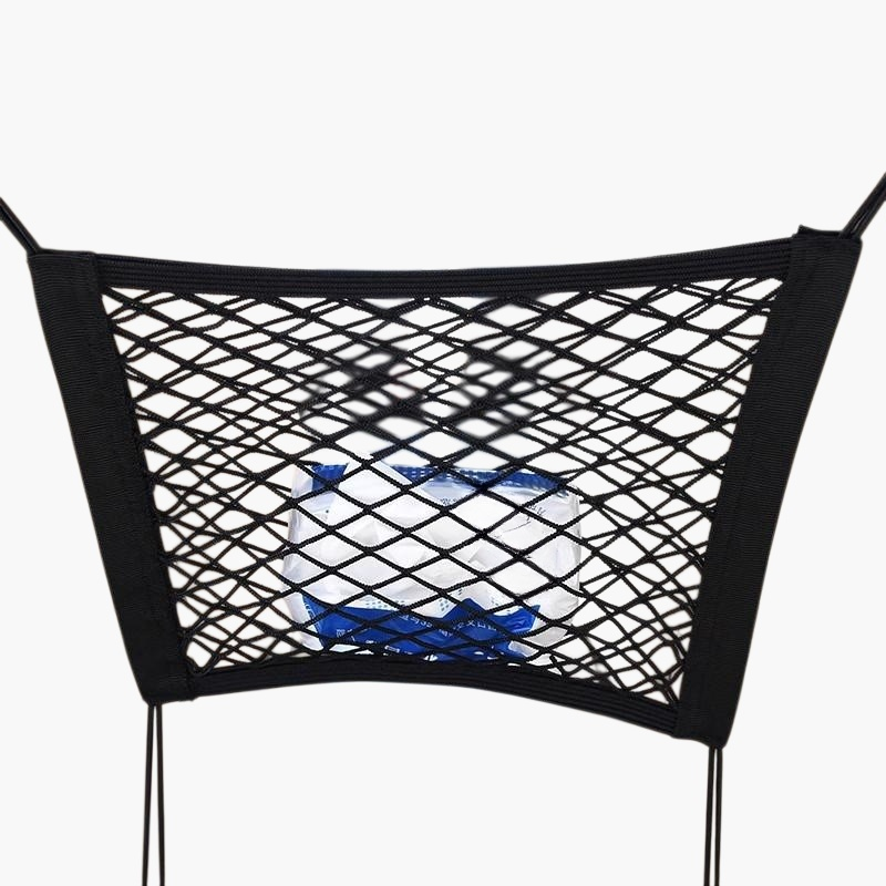 Car seat storage net pocket keeps essentials organized, saves space, easy to install, durable material, universal fit for most vehicles.
